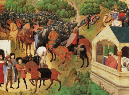 我们大家都知道西班牙有一个漫长的复地运动,也就是说当西班牙、甚至于比利牛斯山以北的一部分土地被阿拉伯人征服以后,他们跨过比利牛斯山向高卢前进,也就是向法国前进,然后在那他们第一次遇到了这些皈依了天主教的法兰克人,然后这些法兰克人一下把他们打垮,从那天开始法兰克人和阿拉伯人就开始对抗。