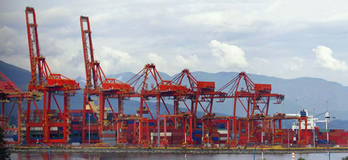 位于北美西海岸中部的温哥华港,现有27座码头,其中散货码头17座,件杂货码头5座,集装箱码头3座。已经成为加拿大最繁忙的枢纽港,同时还是北美航线上的第三大港口,年货物吞吐量可达7000多万吨。