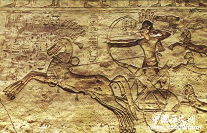 拉美西斯(Ramesses)率领的埃及人与赫梯族人之间的冲突起因是对叙利亚的绝对控制权。公元前1285年4月底,法老率军朝奥龙特(Oronte)河谷进发以征服卡迭石,这是赫梯族在叙利亚建立的一座重镇。