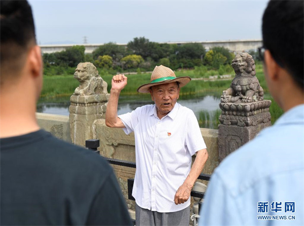 头顶遮阳帽,漫步卢沟桥,触摸石狮子,作为“七七事变”的亲历者,90岁的“光荣在党50年”纪念章获得者、“时代楷模”荣誉获得者郑福来老人,为了让后人铭记那段刻骨铭心的历史,仍坚持在炎炎夏日中,向来往的游客介绍他眼中的抗战故事。