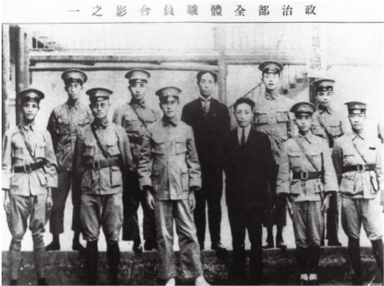 △国共合作创办黄埔军校过程中,学习苏联红军经验,在军校建立了国民党党代表和政治部制度。图为黄埔军校政治部部分人员合影(1925年)。前排右3为聂荣臻。出处:《中国军事史图集》。