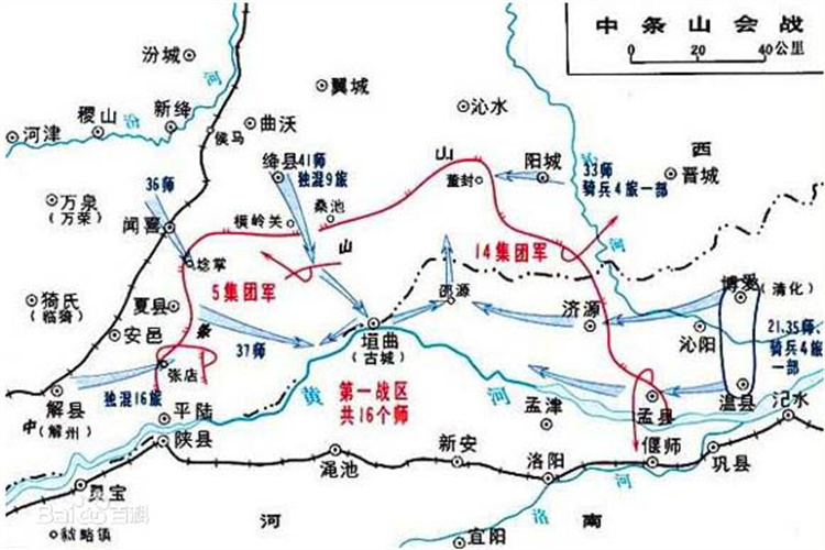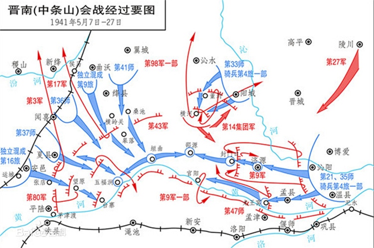 1941年5月7日,自感稳操“胜券”的日军,于傍晚时分突然一齐出动,由东、西、北三面“以钳形并配以中央突破之方式”进犯中条山地区。