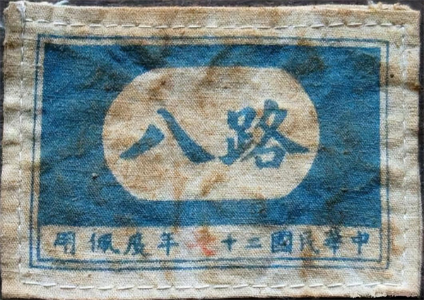 最早的八路军臂章规格为8.5×6.5厘米,白色麻布底,蓝色印制,中间有“八路”名称。稍后佩戴的臂章,也仅有“八路”名称,可是中间套了一个椭圆形框。八路军1938年佩戴的臂章,下方有“中华民国二十七年度佩用”字样,背面加盖有所属部队的印章。八路军1939年佩戴的臂章,规格为8.6×5.8厘米,双层白布底,印蓝色字,正面中间印“八路”两个大字,下面印“中华民国二十八年度佩用”,背面印“尽忠职务、严守纪律、实行主义、完成革命”。八路军臂章佩戴年度也有印公历“一九四—年度”的,也有不印佩戴年度的。早期“八路”的字体都是楷体,后期多为美术体。书写顺序最初为左书,后改为右书。